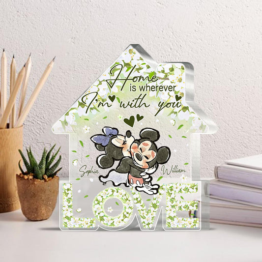 Floral Love Home - Personalized Couple Mouse Custom Shaped Acrylic Plaque