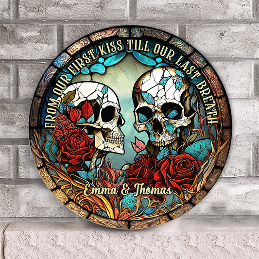 From Our First Kiss - Skull gift for girlfriend, husband, boyfriend, wife - Personalized Round Wood Sign