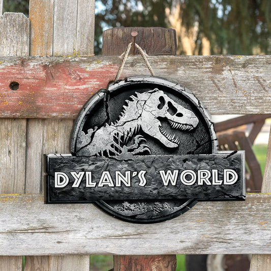 Dinosaur World - Personalized Dinosaur Custom Shaped Wood Sign