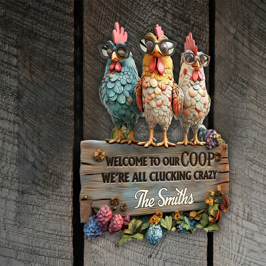 Welcome To Our Coop - Personalized Chicken Cut Metal Sign