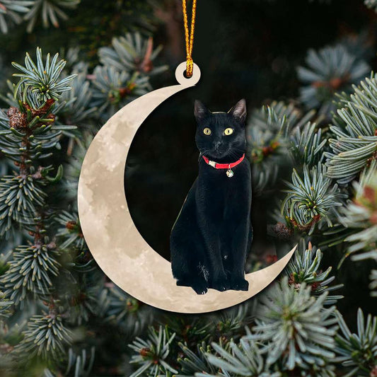 Black Cat Sits On The Moon - Cat Ornament (Printed On Both Sides) 1022