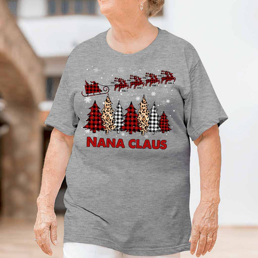 Nana Claus Reindeer Sleigh - Personalized Christmas Grandma T-shirt and Hoodie