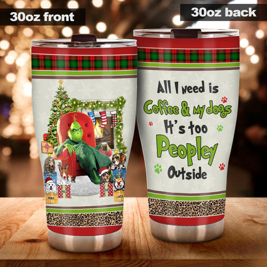 All I Need Is Coffee & My Dogs It's Too Peopley Outside - Personalized Dog Tumbler