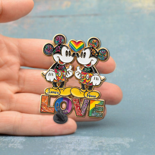 Rainbow Mouse Couple Love - Personalized LGBT Support Pin